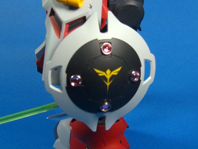 ネオジオンマークのモールド埋め後ガンダムデカール(MGサザビー用)貼り付け