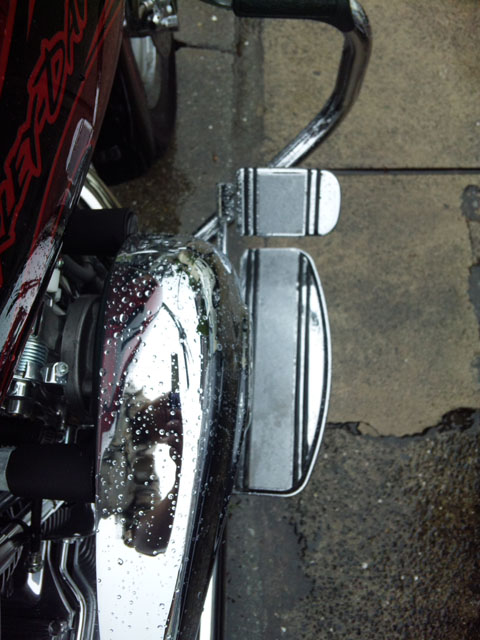 やったことは、リアブレーキペダルを横にズラす加工です。