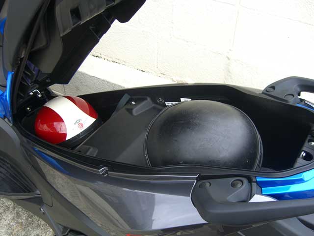 メットは、一応2個入りますが、片方は半キャップじゃないと入りません。