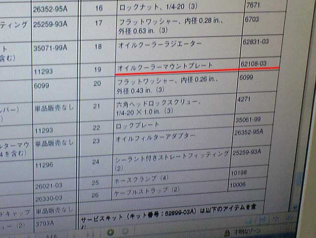 オイルクーラーカバーキット(62995-04)を付けるためのブラケットが